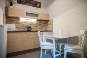 The apartments have parquet floors, a fully equipped kitchen with a dining table and hotplate, and a bathroom with a shower and hairdryer. Some units include a seating area, fireplace, and patio with garden furniture. All apartments have a flat-screen TV with access to streaming services.