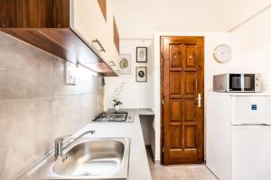 The apartment has one bedroom and a living room with a flat-screen TV with cable channels. There is a kitchen with full equipment including a refrigerator, microwave, stove, and coffee maker. The private bathroom includes necessary facilities, towels and bed linen are provided.