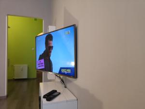 The apartment includes one bedroom, a bathroom with a shower, and a kitchen equipped with a microwave and toaster. The room has a flat-screen TV with streaming services access, as well as Blu-ray and DVD players. Towels, bed linen, and free toiletries are provided. The apartment is allergy-friendly and non-smoking.