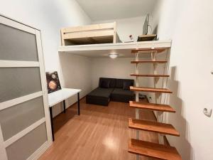 The apartment has one bedroom, a living room, and a bathroom with a bathtub or shower and a hairdryer. Towels and bed linen are provided. The furnishings include a wardrobe or closet, a sofa bed, and a baby cot available on request.