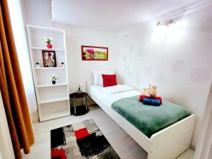 Apartament obejmuje dwie sypialnie, łazienkę z wanną oraz wyposażoną kuchnię ze stołem jadalnym. W pokoju znajduje się telewizor z płaskim ekranem i dostępem do platform streamingowych. Goście mają także do dyspozycji taras z widokiem na miasto oraz prywatne wejście. W apartamencie dostępny jest sejf, wentylator oraz ogrzewanie podłogowe lub parkiet.