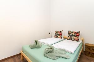 The apartment has two bedrooms, a bathroom with a shower, and a kitchenette with an oven and microwave. It includes a washing machine, flat-screen TV, sofa, and table in the seating area. Towels and bed linen are provided.