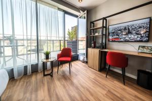 Las habitaciones tienen aire acondicionado, escritorio, cafetera, nevera, caja fuerte y televisor de pantalla plana. El baño incluye ducha o bañera, toallas y artículos de aseo gratuitos. Algunas habitaciones cuentan con balcón y vistas a la ciudad.