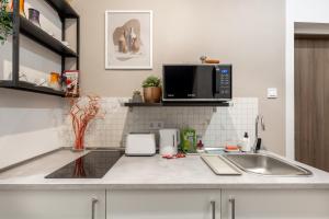 L'appartamento comprende una camera da letto, un soggiorno e una cucina completamente attrezzata con tavolo da pranzo, microonde, bollitore elettrico, tostapane e piano cottura. Il bagno ha doccia o vasca da bagno e asciugacapelli. Sono disponibili asciugamani e biancheria da letto.